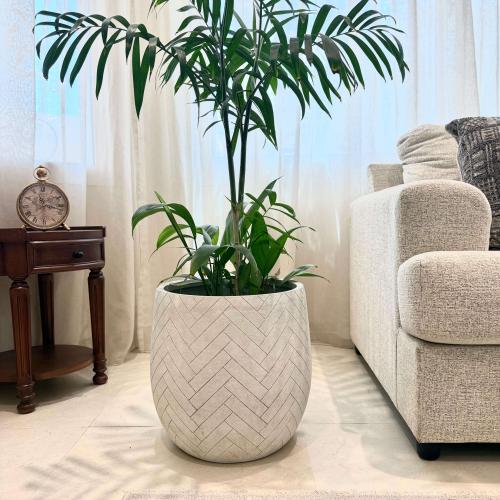 - أحواض فايبر جلاس: خفيفة الوزن ومقاومة للعوامل الجوية، مثالية للاستخدام الخارجي، وتمنح المساحة مظهرًا عصريًا وعصريًا جذابًا.
